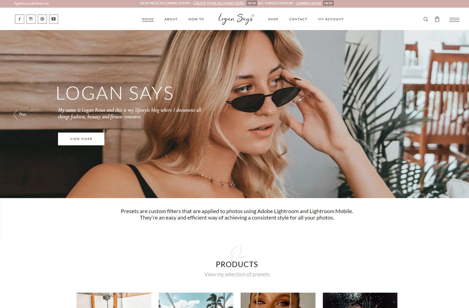 Lifestyle blog documenting fashion, beauty and fitness ventures while selling presets.